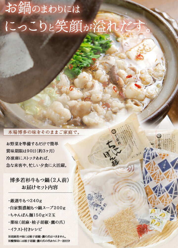 博多若杉 もつ鍋 お試しセット(2人前) 送料無料 総合ランキング5日連続1位! ホルモン お取り寄せ モツ鍋 老舗 ギフト プレゼント 贈り物 お祝 内祝 高級 退職祝い 2020 食べ物 グルメ 博多 九州 父の日ギフト 父の日 ギフト プレゼント 食品 おつまみ 食べ物 お中元 御中元