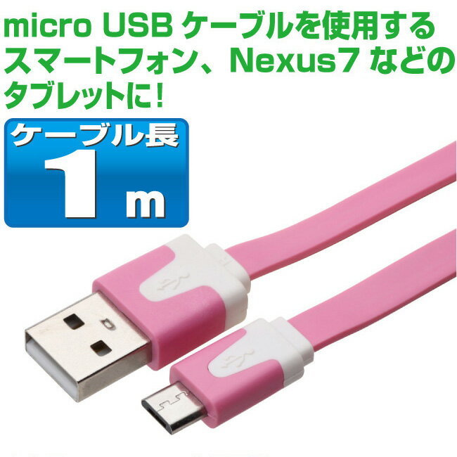 スマホ 充電ケーブル アンドロイド 1m microusb フラットケーブル カラフル 10色 充電 ケーブル メール便 送料無料 マイクロUSB 充電器 USB スマートフォン タブレット GALAXY xperia arrows AQUOS 扇風機 ハンディ 首掛け iqos アイコス glo グロー ケーブル